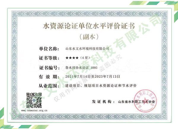 公司擁有水利工程設計、水土保持、水文水資源調查評價、水資源論證、建設項目環境影響評價、市政公用工程施工總承包、水利水電工程施工總承包、電子與智能化工程專業承包等資質,2017年通過質量管理體系、環境管理體系、職業健康安全管理體系認證;2020年被評為國家級高新技術企業,同年被中國水利企業協會推薦為第一批“合同節水服務企業”;2021年被山東省、濟南市評為 “專精特新”中小企業。業務范圍涉及水利工程設計;節水設計、改造、水平衡測試;山洪災害調查;城市水資源調查評價;建設項目水土保持方案編制、監測、驗收、水土保持規劃;水安全保障規劃、建設項目水資源論證、規劃水資源論證;建設項目環境影響評價;入河排污口論證;防洪影響評價;市政公用工程施工、水利水電工程施工、電子與智能化工程施工等。